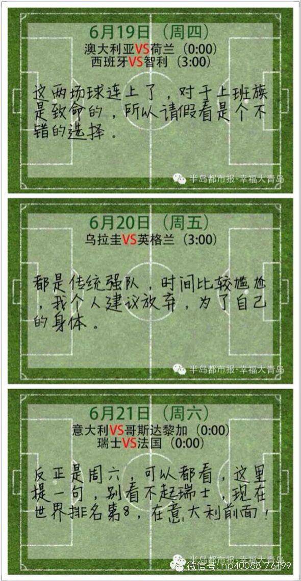 今年的父亲节正好在世界杯期间,与其像以往那样去商场给爸爸买这样那样他不见得需要的礼物,还不如拿出自己的真心,每天晚上吃完饭后陪他一起看两场球赛更暖人心。以前每次爸爸看到又是妇女节又是母亲节的,就开始吃醋,今年也让他当一个月的主角。